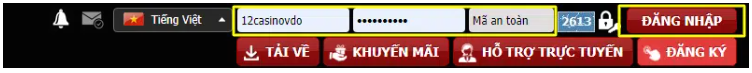 Sau khi hoàn tất đăng ký 12bet, người chơi điền thông tin bao gồm: Tên tài khoản, Mật khẩu, Mã an toàn 4 chữ số tại góc phải màn hình.
